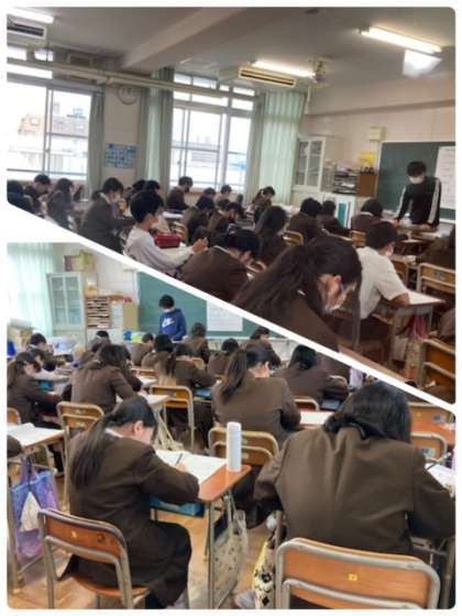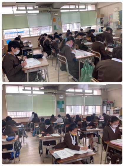 学力経年調査の最後は、5、6年生の英語でした。リスニングテストの音に耳を傾ける5、6年生でした。