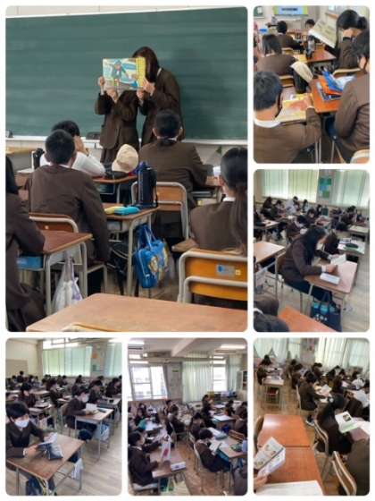 8時40分からの10分間は、読書タイムです。読み聞かせもあり、自分で読むのもあり、全学年で読書に取り組んでいます。
