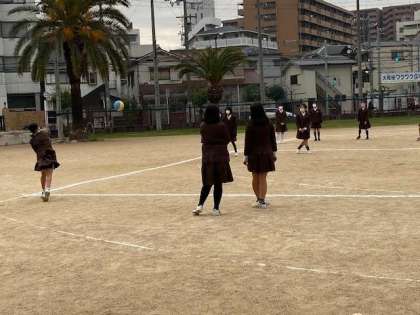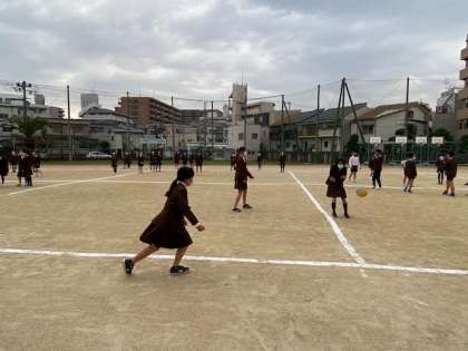 朝から6年生が運動場でドッジボールをしていました。実は3学期に予定されている3小交流に向けてのことだそうです。