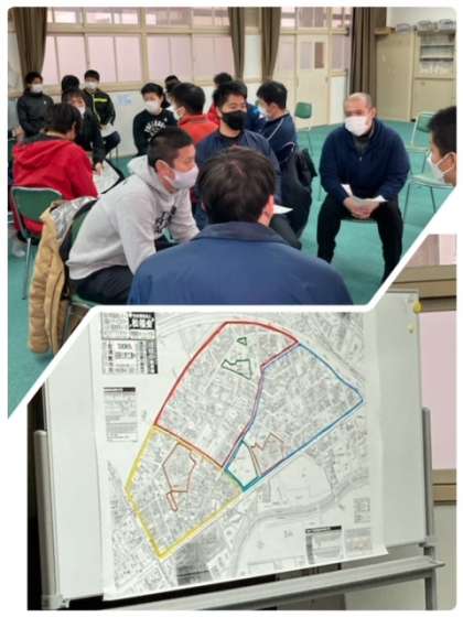 情報交換の後は、小中の先生が3つのグループに分かれて、大和田小学校区内の巡視をしました。