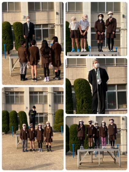 児童朝会は、運動場で行われました。
