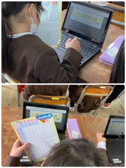 ローマ字入力に慣れるため、ローマ字表を使いながら頑張って入力しています。