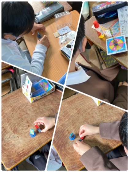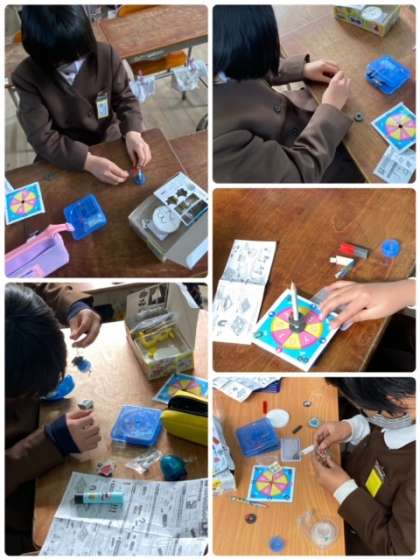 磁石の性質について学習しています。その発展として、磁石の性質を活用して、ルーレットを作ったり、動くおもちゃを作ったりしています。