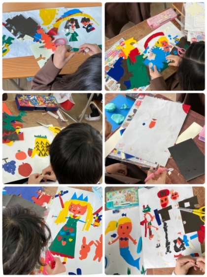 1年生も同じようにカラー紙版画に取り組んでいました。出来上がりが楽しみですね。