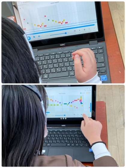 5年生が、新しく入ったsong makerというアプリを活用して、音楽づくりに挑戦していました。