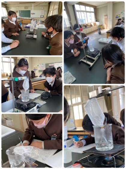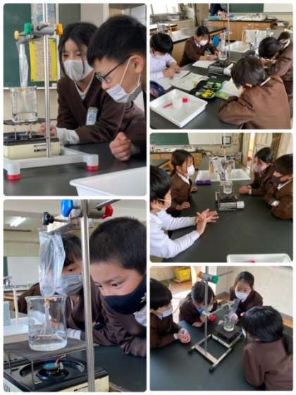 理科室で、水を温めたときに出てくるアワの正体を考える授業でした。