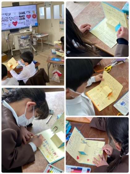 家族の方へ、感謝の気持ちを伝えるカードを作っていました。出来上がりを楽しみにしておいてください。