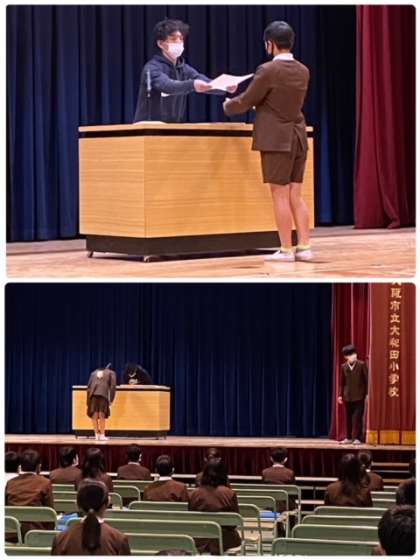 ?今日は、卒業証書授与の練習を一人一人していました。丁寧に純情を覚えようと緊張感を持って頑張っていました。