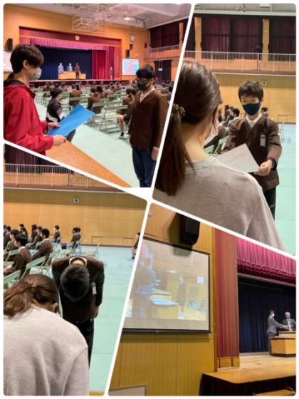 あと、当日参加ができない5年生が、保護者の座席に座り、見学し、卒業式の雰囲気を体験しました。5年生の代表委員会の皆さんも、頑張っていました。