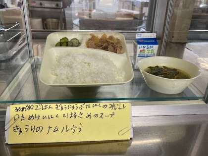 今年度最後の給食は、韓国風の献立です。美味しく感謝していただきました。
