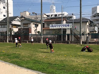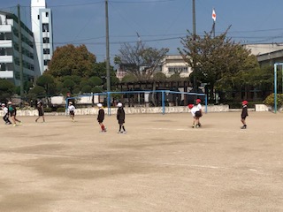 密を避けるため、休み時間は1、2、3年の時間、4、5、6年生の時間に分けています。写真は1、2、3年生の時間です。いろいろな遊びを楽しんでいます。