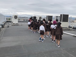 教室から屋上へとあがります。ここから我が町の大和田・大野百島を見ます。