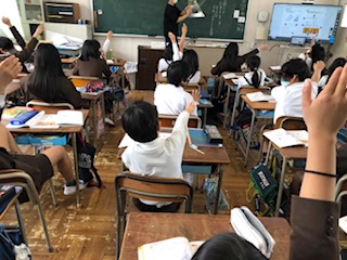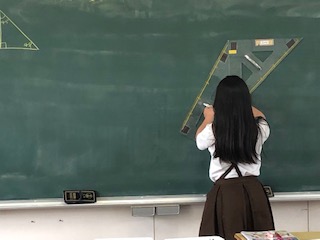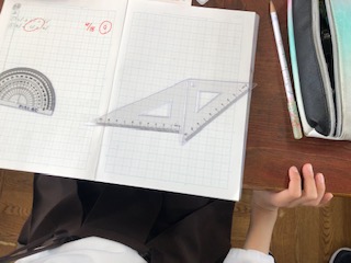 三角定規の使って角度が何度になるのかを考えていきます。手元で三角定規を重ねたり、前に出て発表したりしています。
