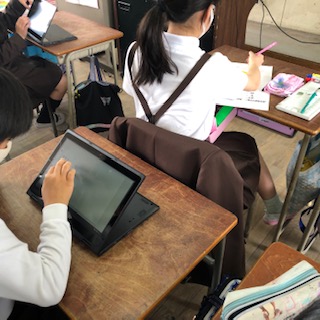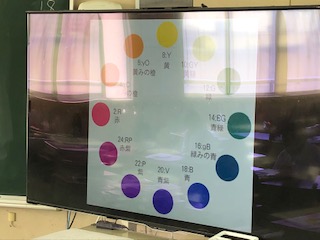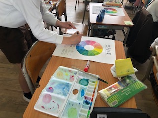 5年生の別のクラスでは図工で色相環を絵の具で作成していました。