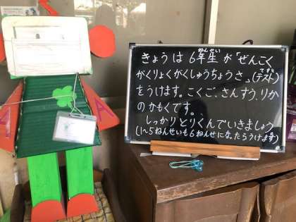 今日は、6年生が文部科学省の「全国学力・学習状況調査」を受けます。国語、算数、理科の教科と児童質問紙です。これは全国で一斉に行われます。