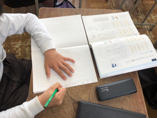 本を持っての音読をしています。その後にはしっかりノートに書いています。