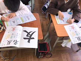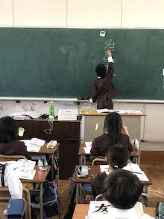 新出漢字(新しく習う漢字)を練習しています。黒板にも書いています。