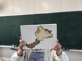 都道府県についての学習です。都道府県の形を絵にしています。子どもたちは地図帳をよく見て考えています。