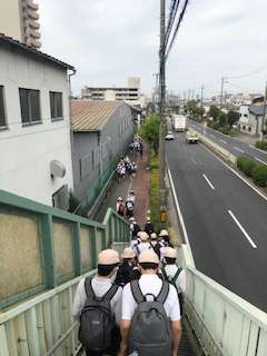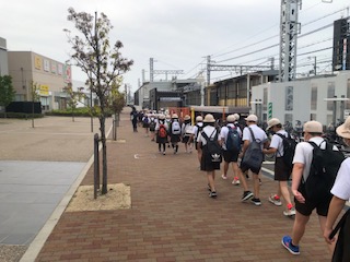 今日は6年生の遠足です。8時30分に学校をでました。並んで歩いて福駅に着きました。