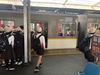 鶴橋駅で普通電車に乗り換えます。14時41分発の電車に乗りました。福駅まで乗ります。