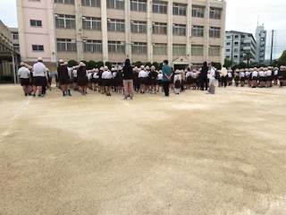 担当の教員から名札について、行き帰りは見えないようにしまっておいて、登校したら見えるように出すことが話されました。
