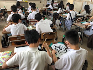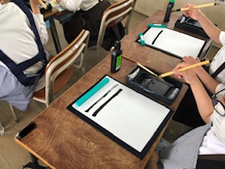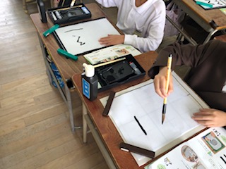 3年生は新しいことをたくさん学びます。書写で毛筆を使って書いていきます。今日は筆の使い方に慣れる活動をしました。