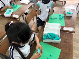 1年生が算数や国語だけでなく、粘土、音楽、そして、お楽しみ会などの活動もがんばりました。