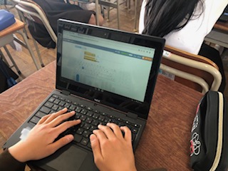 高学年では長い文章も入力していきます。この時間は、速く入力できるようになるためのタイピングの練習をしています。