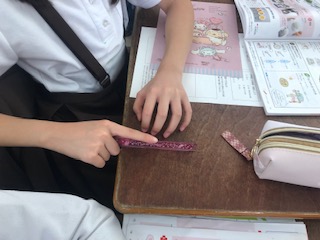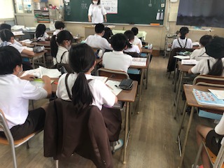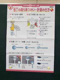 ようやく感染症対策のもと、調理実習もできることになりました。包丁の使い方を学んでいます。包丁で指を切らないように関節を曲げて「猫の手」をすることを練習しています。