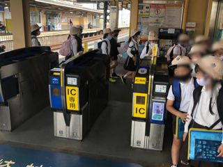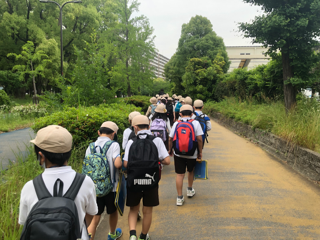 福駅から学校までは緑陰道路を歩いていきます。子どもたちの様子をご覧ください。