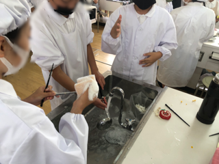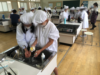 調理実習をして、おいしく食べた後が大事ですね。みんなで後片付けに取り組んでいます。
