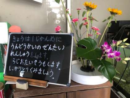 ブラックボードの横には生涯学習の方がいけられたお花が飾られています。ありがとうございます。