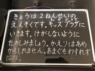 今日は2年生が遠足でキッズプラザに行きます。室内ですので雨が降っても楽しめます。