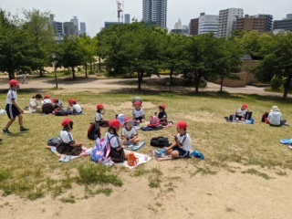 雨も降っていないので外へ出て、扇町公園で食べます。