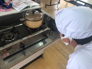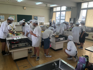 6年生が調理実習をしています。