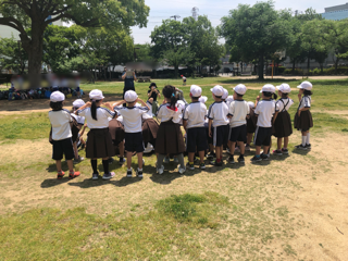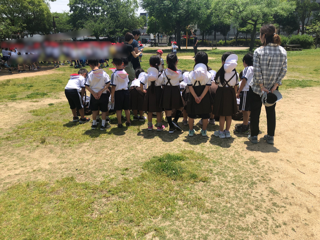 たくさん遊んだ後、クラスごとに写真を撮りました。他の小学校や幼稚園の子どもたちも来ましたので、緑地はいっぱいになりました。