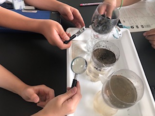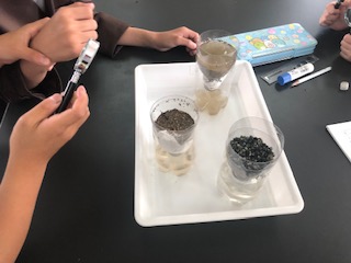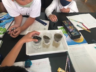 土の種類によって水がどのようににごるのかを比べています。