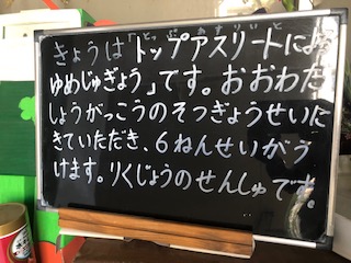 今日は6年生の「トップアスリートによる夢授業」があります。