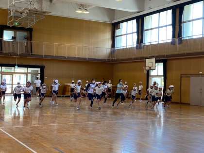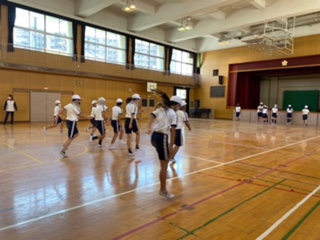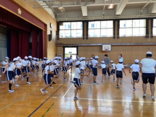 体育館で「効率よく速く走る方法」を教えてくださいました。この成果を運動会でいかして、すごい走りを見せていきましょう。目指せ、優勝。