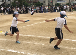 次々とバトンが手渡されたいきます。(写真は実際に走っている順番とは異なります。他の学年も同じです)
