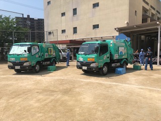 今日は大阪市環境事業局の方によるパッカー車体験です。始めに説明がありました。