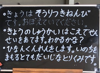 ◯火災を想定しての避難訓練をします。大和田中央公園に避難します。