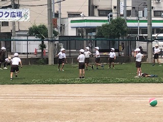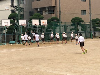 ソフトボール投げなどのラインが引いてあったのでしばらく運動場では遊べませんでした。各学年でのテストが終わったので久しぶりに運動場で遊べるようになりました。