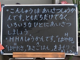 今週は「あいさつ週間」と「HHA週間(Hはやね Hはやおき Aあさごはん)」です。