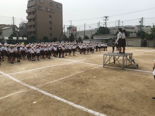 ◯代表委員会の子どもたちがあいさつ週間について話しました。(中の写真)