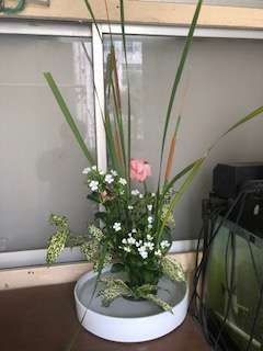 校長室前に生涯学習の方が活けられたお花が置かれています。ありがとうございます。