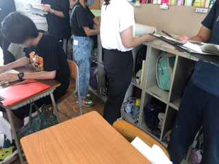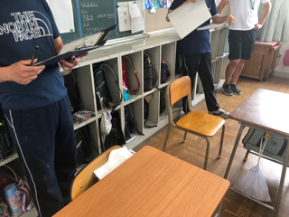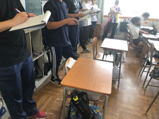 6年生の国語の授業は、授業研究会とした行っています。教員が授業を見ています。