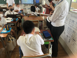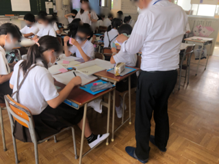 今日は、教育センターから指導担当の方に来ていただきました。三つの教室をまわってみてくださいました。