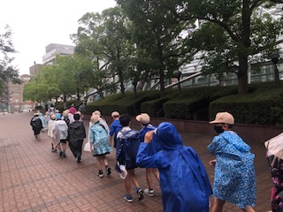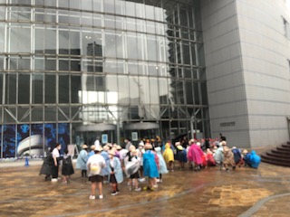 レインコートを着て大阪市立科学館まで行きます。9時30分頃に到着しました。