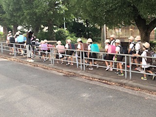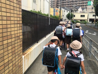 地区別子ども会の後、それぞれの班ごとに集団で下校していきます。